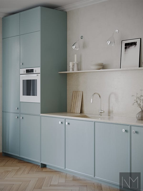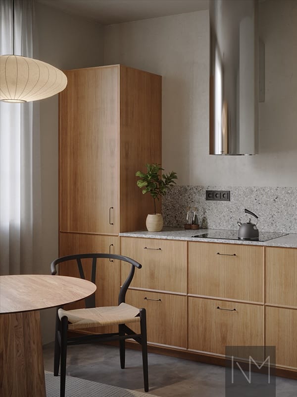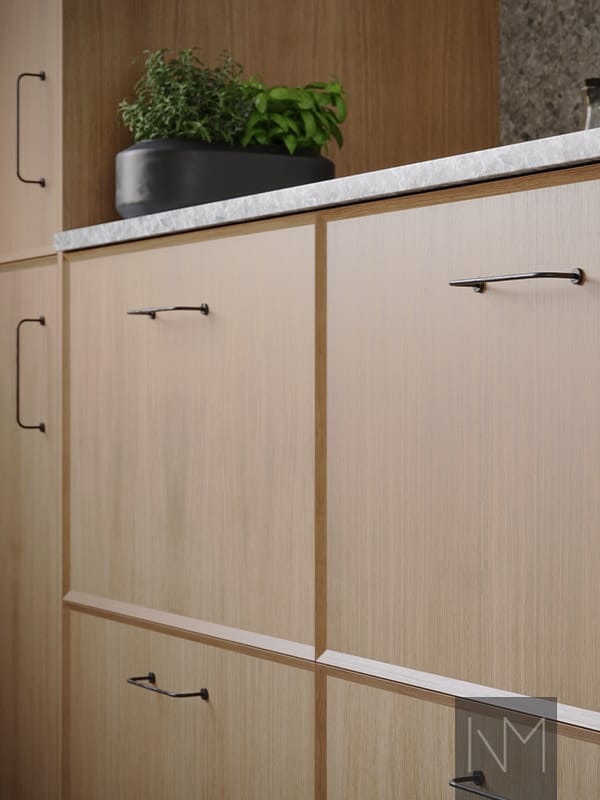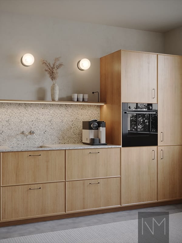 Enigma serien er lavet af fineret MDF i enten ask eller eg, med lodret åre, der giver både struktur og variation, da det er et helt naturligt produkt. Den rene, klassiske køkkenfront fra Nordic-kollektionen er blevet opgraderet.