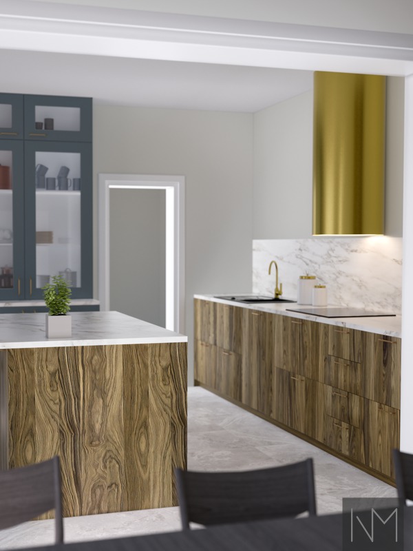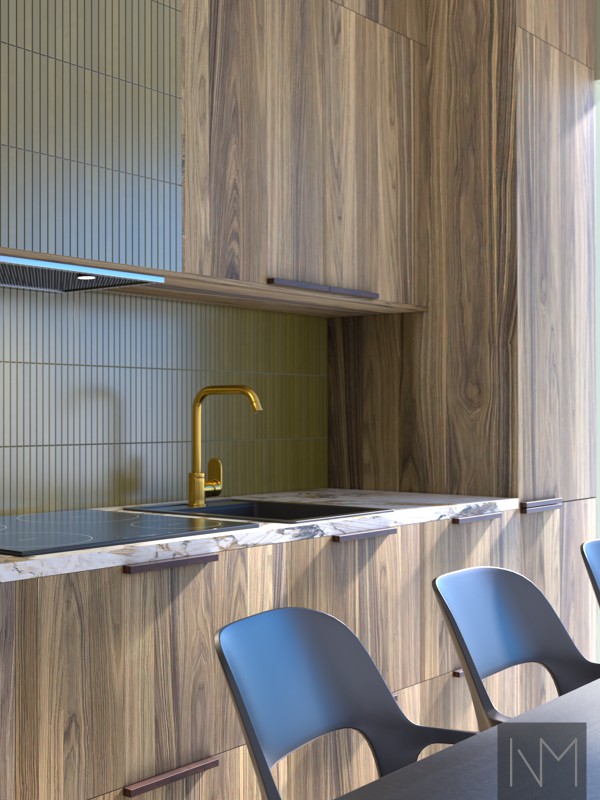 Either way, we are here to help you customize the design. Let the Nordic Walnut fronts shine in their natural state by either adding a clear coat in your choice of gloss or a matte hard wax oil. To add more variation, you can combine complementing fronts in any colour from our standard collection. Check out our Instyle or Circle designs for handleless and minimal fronts, or the Basic design to let the Nordic Walnut fronts be the centre of attention.