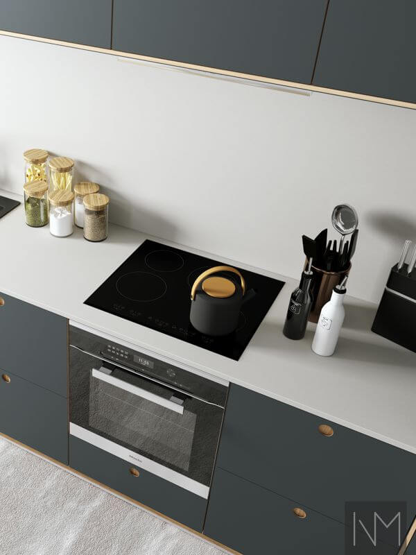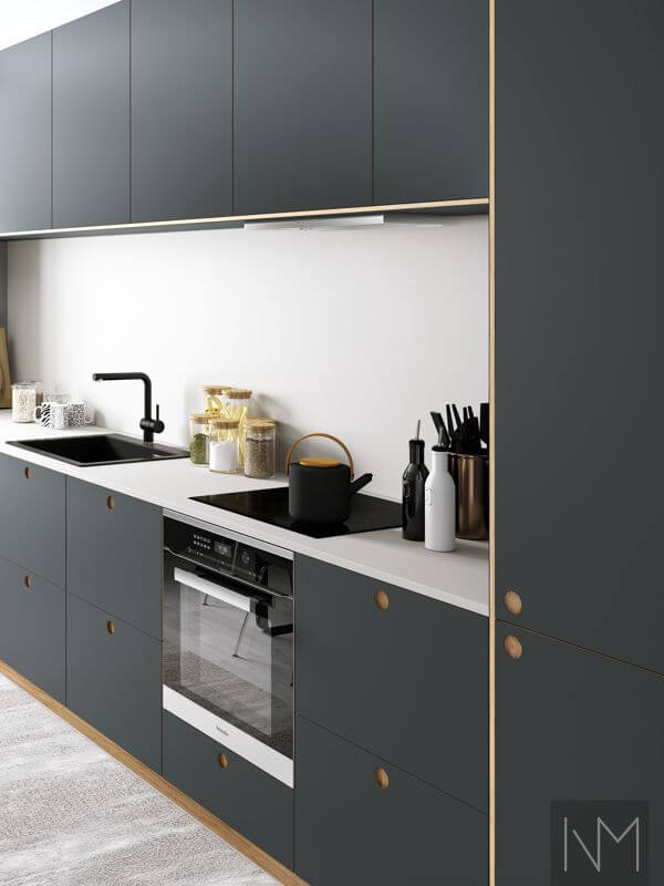 Linoleum Basic est une bonne combinaison de façades mates sans traces de doigts et d’un choix durable. Le matériau naturel n’est pas seulement une option respectueuse de l’environnement, il a aussi une surface agréable au toucher qui conserve bien les couleurs dans le temps. Ces produits sont fabriqués en MDF avec une face en linoléum et un placage en chêne au dos et sur les bords. Créez une cuisine de rêve passionnante et harmonieuse avec des façades fonctionnelles en linoléum ! La ligne de produits est également disponible en Linoleum Circle si vous voulez des façades avec des poignées gravées.