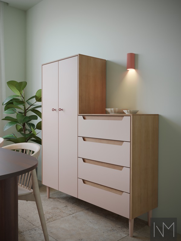 • Gemaakt van 21 mm gefineerd HDF, linoleum en een greep van massief eiken.